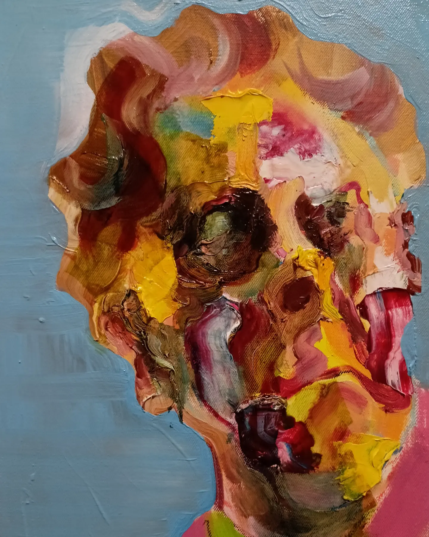 zdrowie życia. Gęsto nakładana farba olejna w moich portretach jest próbą naśladowania struktury skóry nakreślonej zużyciem. Jest to także moje widzenie i podpatrywanie emocji wyrażanych w danej chwili lub okresie życia. Próbuję przekazać ich oblicza w sposób prosty, czytelny i odnajdywać w nich piękno poprzez kolor, strukturę.”