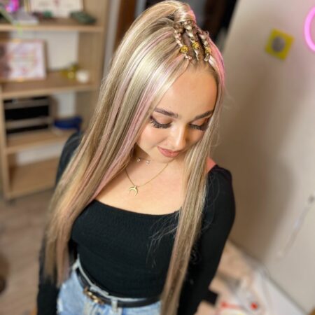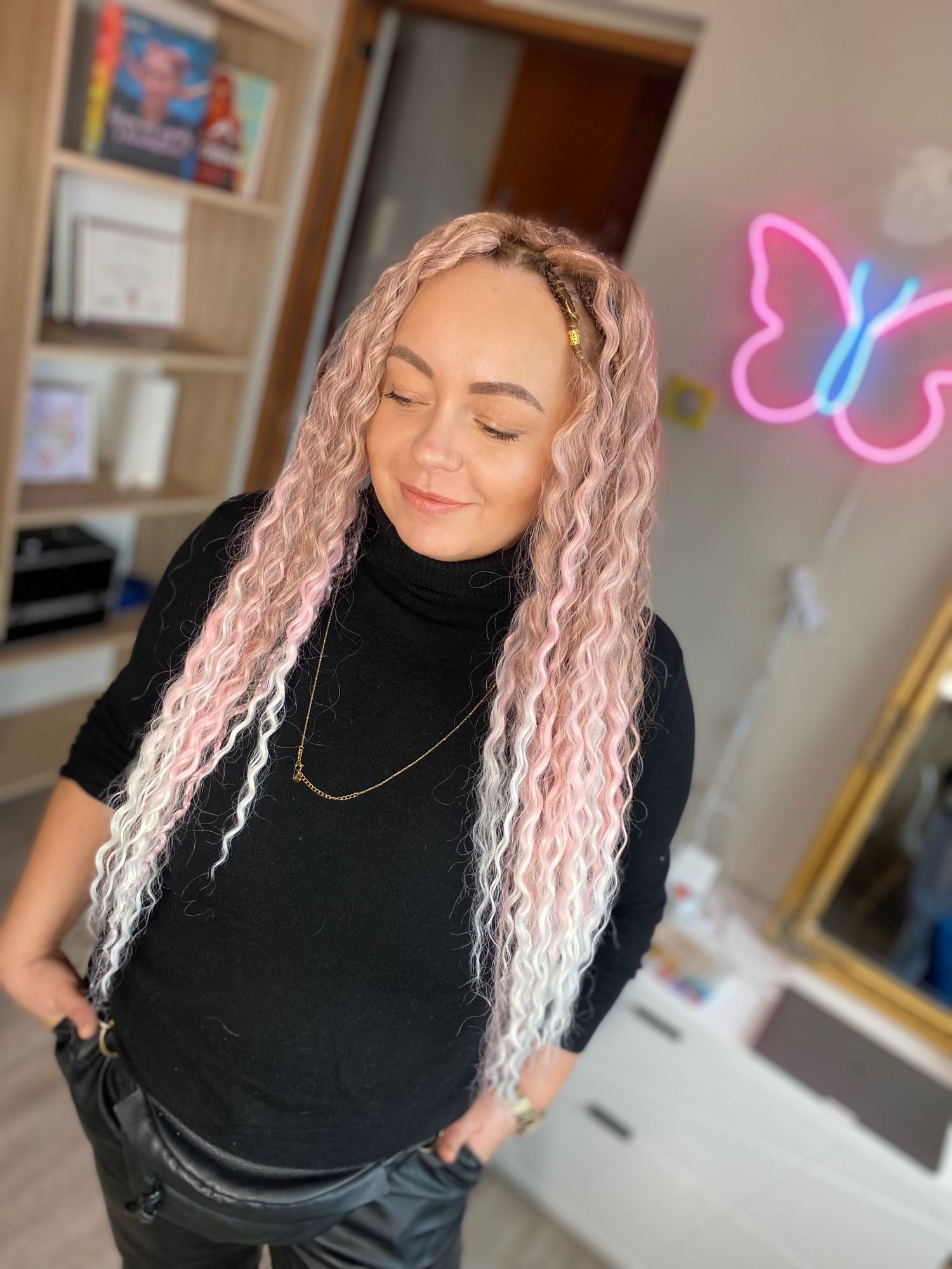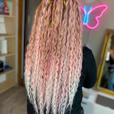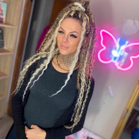 Zajmuje się zaplataniem fryzur z użyciem włosów syntetycznych. W moim boxie możesz wykonać warkocze bokserskie, wodospady kucyki, dredokudry i dredloki.